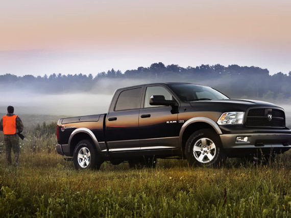 Specifically designed and engineered for passionate outdoorsmen (and women) who consider hunting, fishing and boating among their favorite pastimes, the all new 2013 Ram 1500 Outdoorsman combines convenience, off-road capability and trailer towing with the rugged performance of a 5.7 Liter HEMI V8 or a more eco-friendly 3.6 Liter Pentastar V6. Originally unveiled as a new model in 2010, the Outdoorsman has remains a popular addition of the Ram lineup, and is now available in a choice of two cab sizes (Quad and Crew) and two bed lengths (5 ft. 7 in. and 6 ft. 4 in.). We’ll take the 6′ 4″ bed with a 5.7L HEMI please!