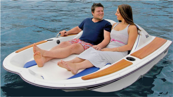 Trimmed with mahogany and stainless steel cup holders, the Electric Motorboat by Hammacher Schlemmer is a two person water conveyance pod that when fully charged will keep you motorboatin’ for up to six hours at a leisurely 4 mph. It’s small frame (only 195 lbs) is perfect for small lakes and ponds and even has a cooler large enough to fit a case of beer! And what would a day out on the water be with out music? Hammacher Schlemmer’s got that covered as well with a waterproof 120-watt audio system with two 5″ speakers which are of course iPod friendly.
