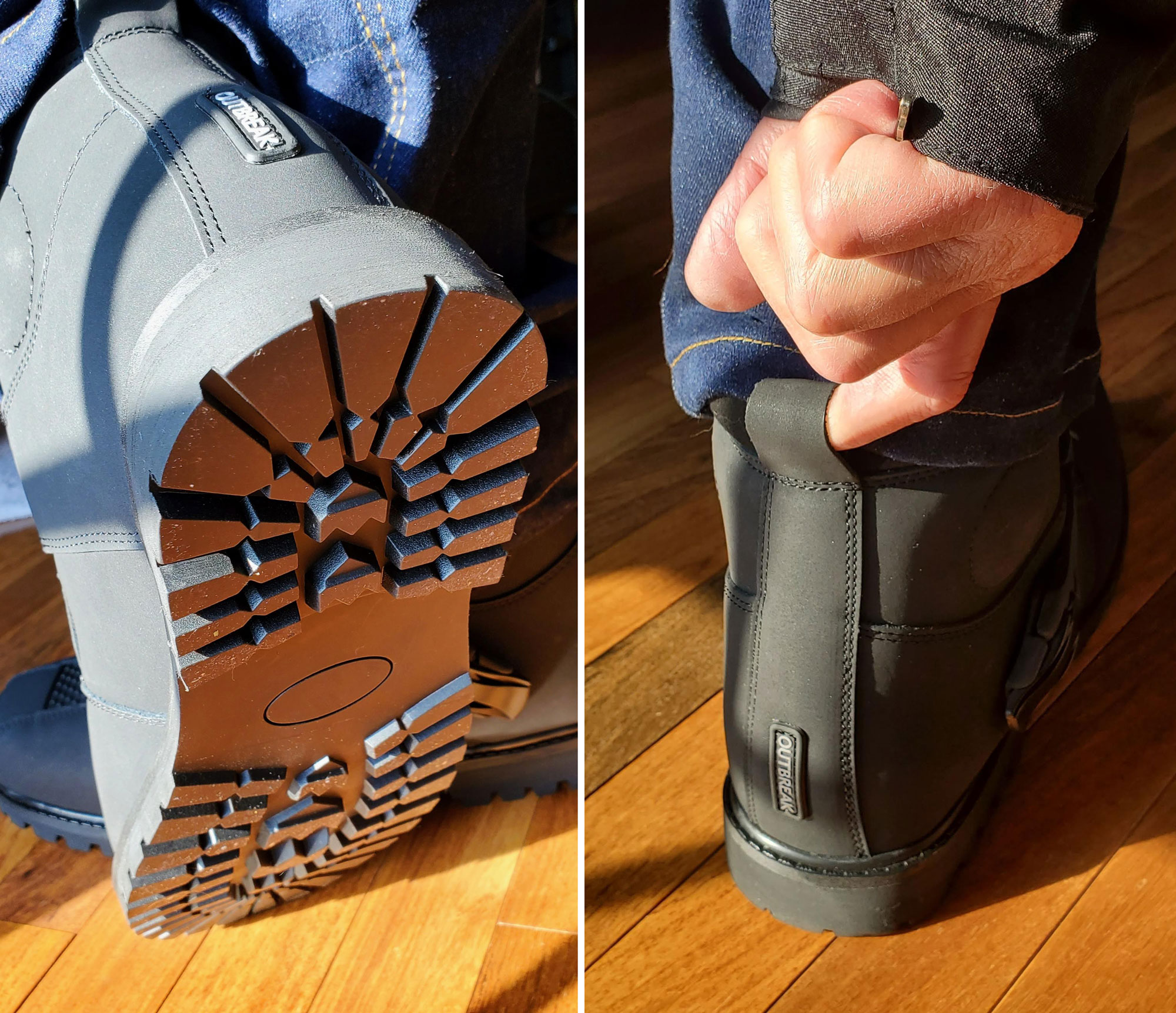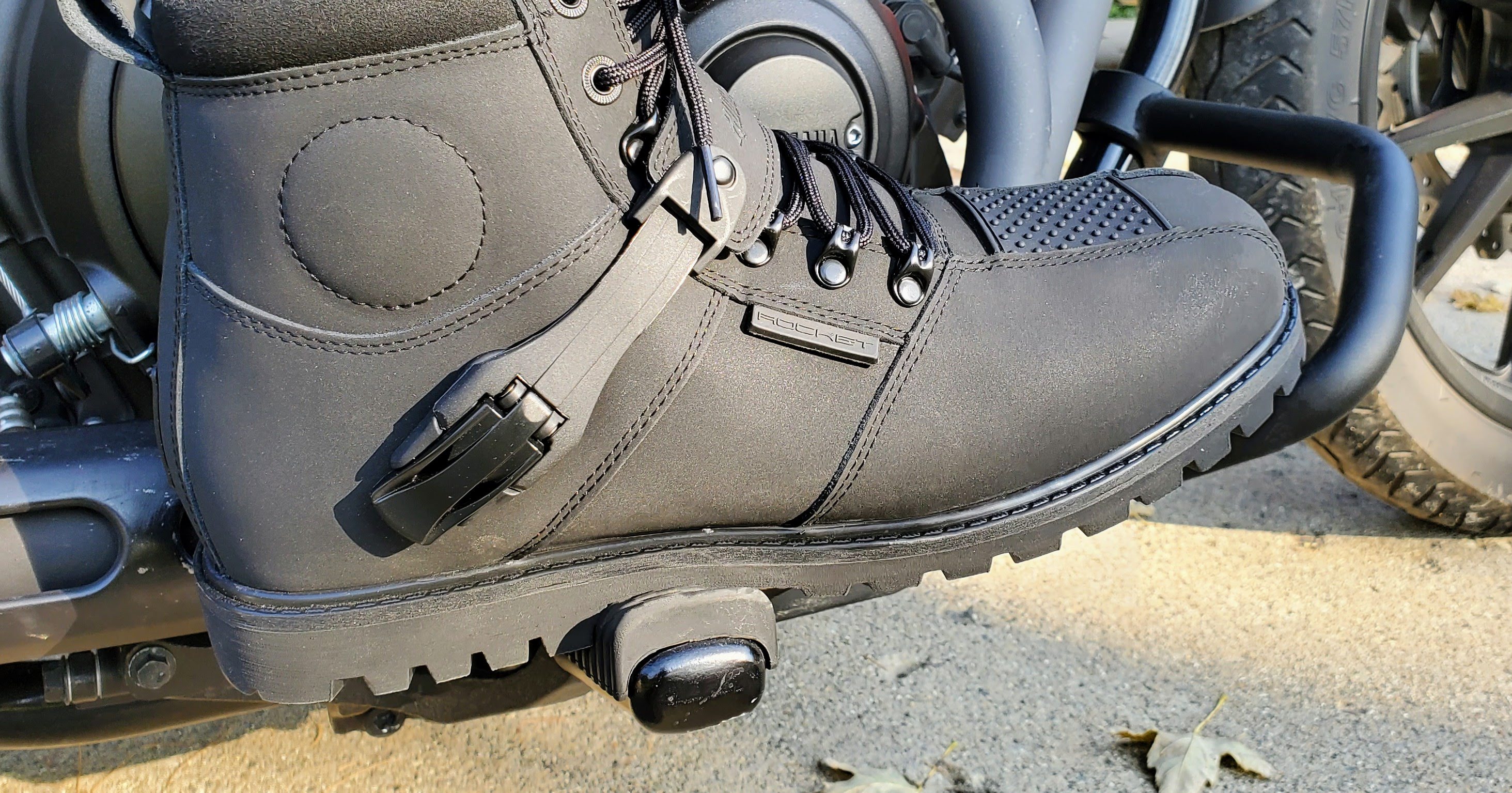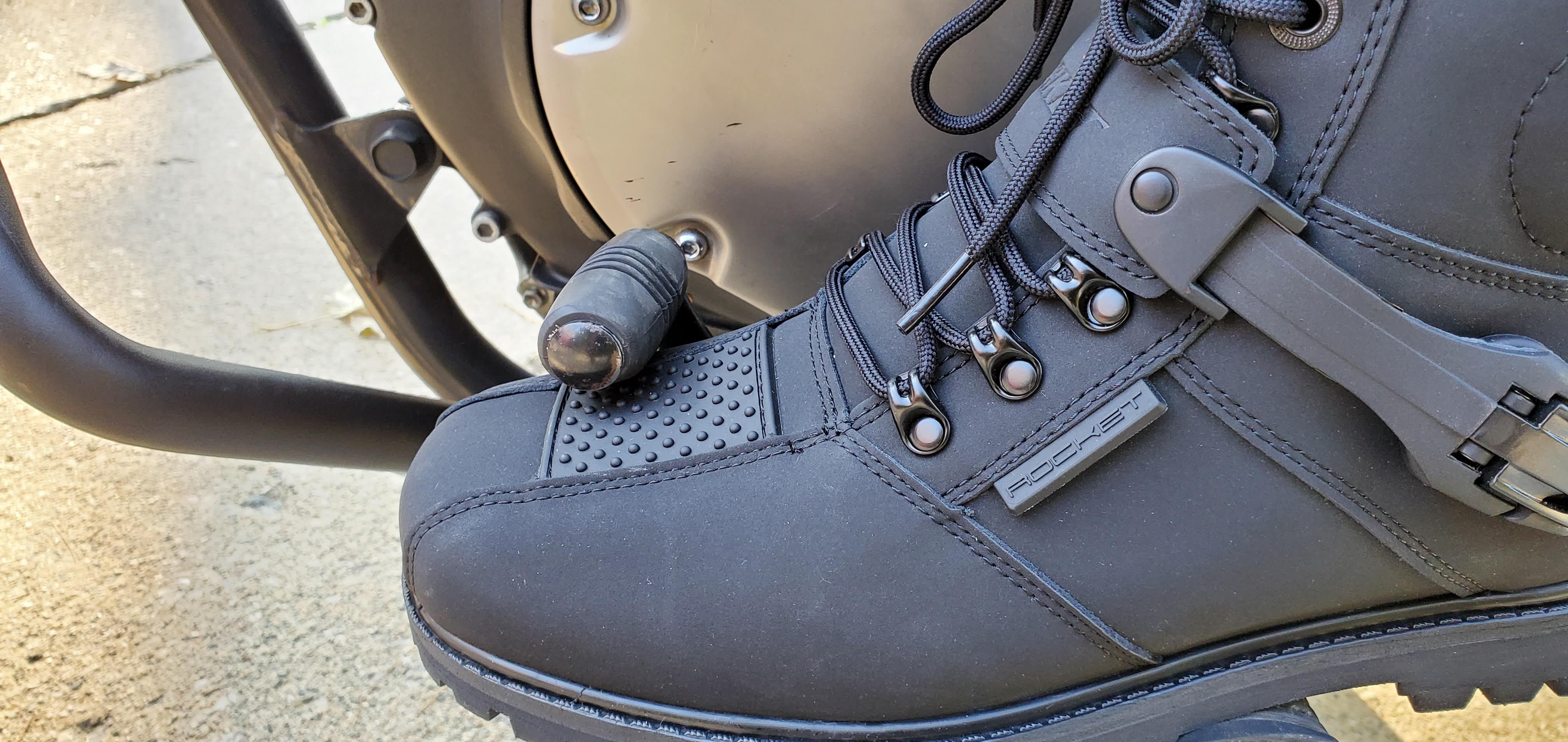 These boots were made for riding! From the reinforced shifter panel to the non-slip sole design, these boots help keep your feet on the pegs while riding and grip the ground nicely in wet conditions. They will take some time to break in, but that seems to be common among all the riding boots we’ve reviewed so far. The matte finish leather chassis is a clean look and the padded ankle cuff adds more comfort. One of the nice features is the rear pull loop, but unfortunately one of them snapped right off the first time I put them on. So, off they go. Not a deal breaker, since I never really liked how they always seem to get in the way of the cuff part of the jean, but it still would have been nice to have these triple stitched so they could have lasted a bit longer.