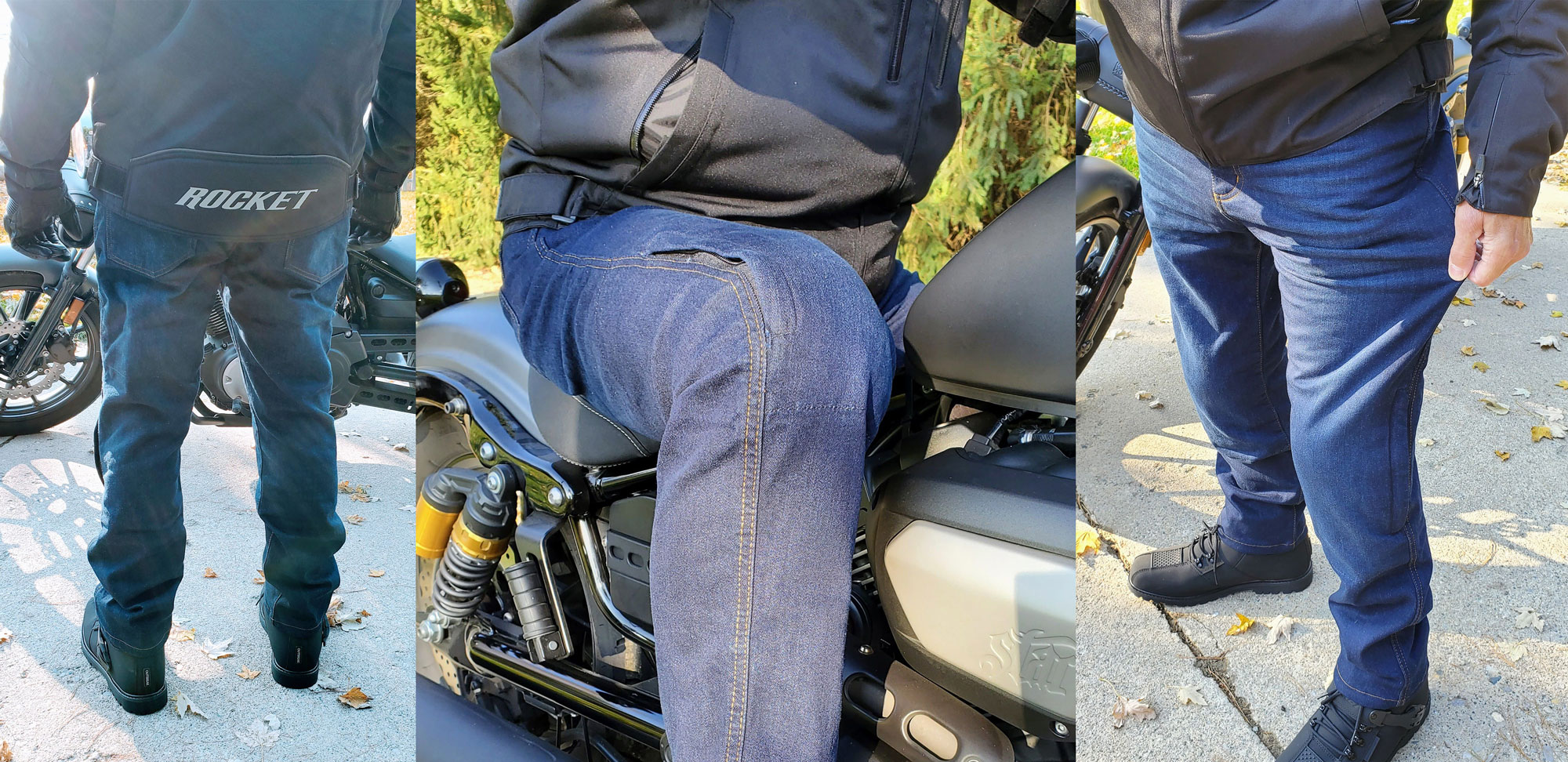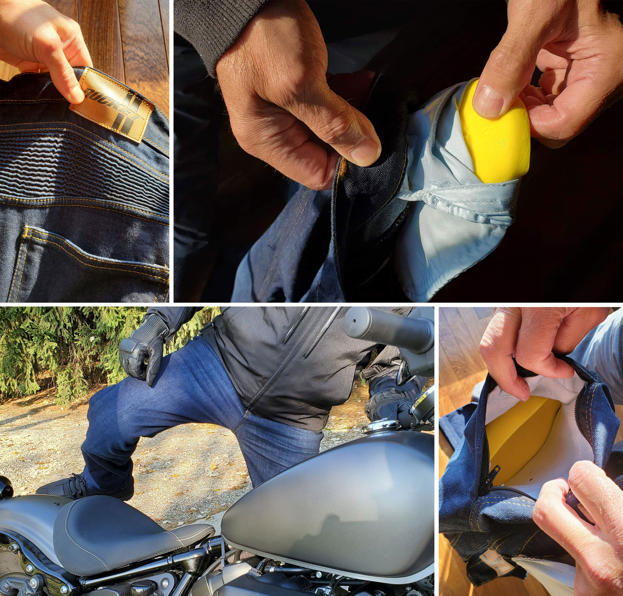 If you’re looking for an ultra comfy, relaxed-fit riding pants that have excellent durability and protection, look no further. These new Anthem jeans are amazing. Heavy duty stretch denim with an extra full flex stretch panel at the back yoke creates greater mobility when getting on and off the bike as well as comfort while riding. The YKK® zippers throughout are built to last and function properly zip after zip. Plus the easy access two stage adjustable knee armor make it great for slipping the pads in when riding and out when walking around town. There are also two hip pads for extra protection.