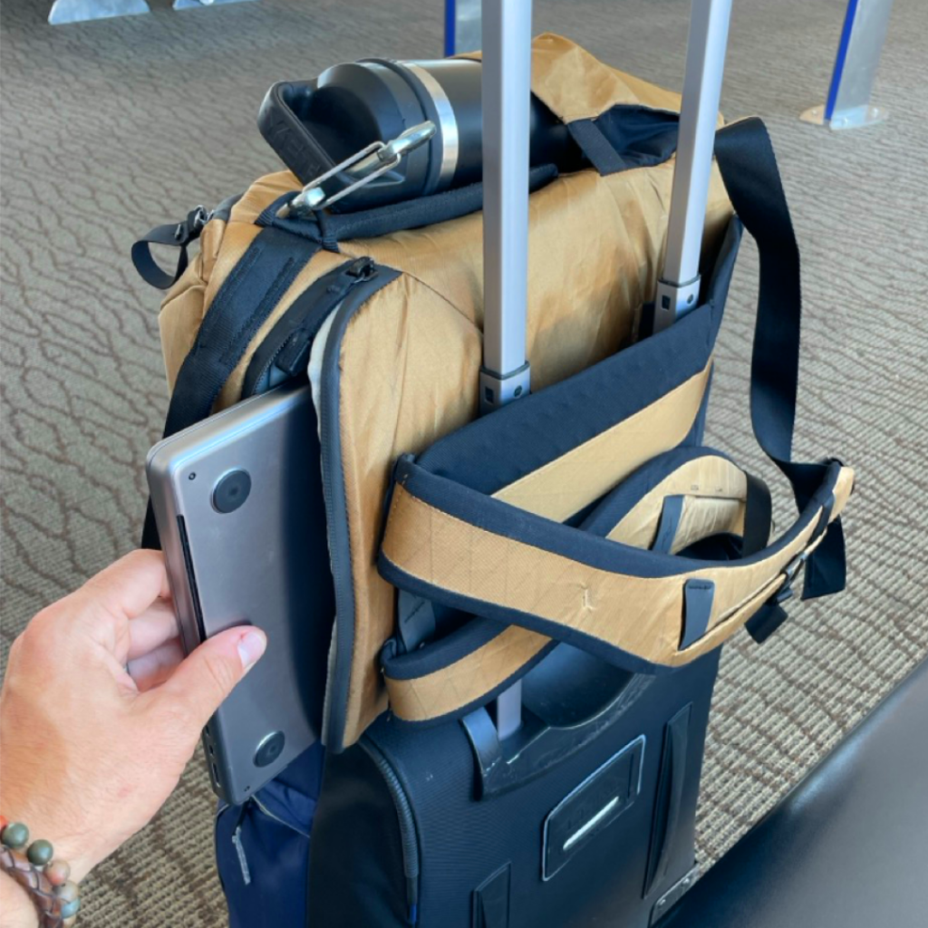 Speaking of removable, I have also completely removed the dividers to use the pack as a standard backpack for travel. In that configuration, I carried a 14in MacBook Pro in the laptop sleeve, a 15in Lenovo ThinkPad in the main compartment, plus a tech pouch, over the ear headphones, a charger, and a pile of snacks. In this configuration, it comfortably fit all my valuable essentials and slid right under a standard economy airline seat.