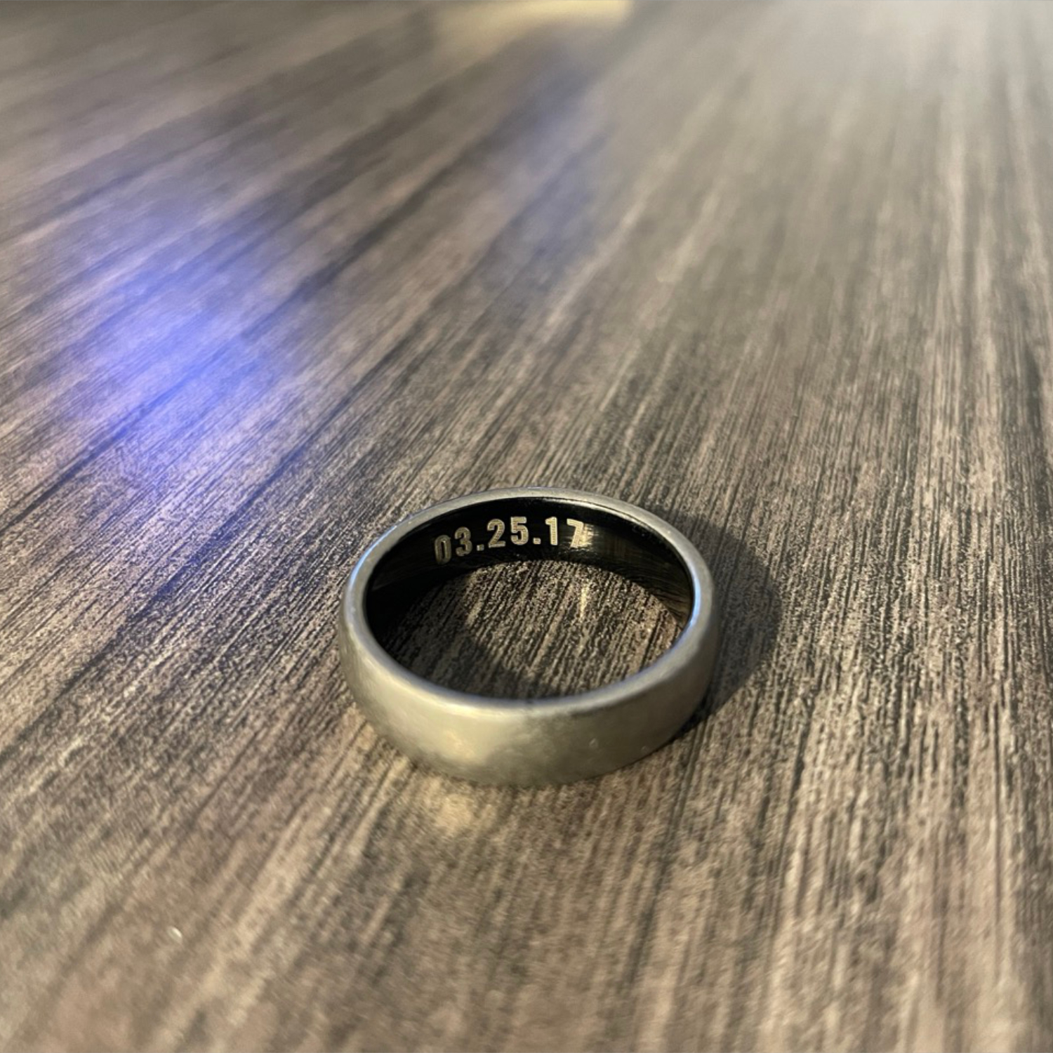 I opted for a simple engraving on the inside of the ring. It is just a date, the date that my wife and I met—which is a bit non-traditional. We just loved the idea of including the day it all started on the ring, as we had been together over 7 years before getting married.