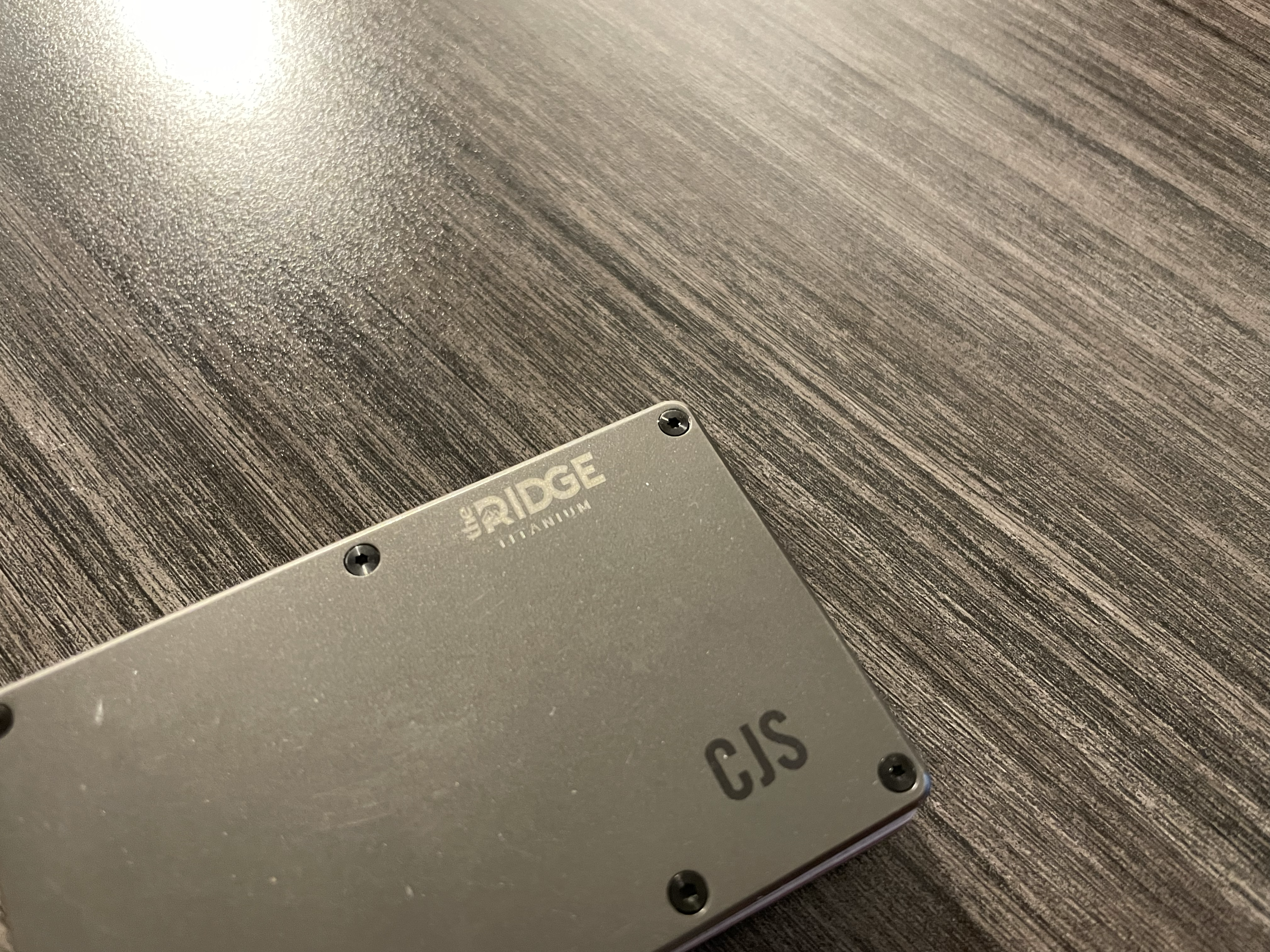 After nearly 3 months of testing it, including the Eurotrip, I can honestly say it’s held up well. The elastic pilled a bit, but that was an easy cleanup with a battery de-piller we had at the house. Additionally, Ridge claims the Wallet is scratch-proof, but I did get a scratch in the finish. Maybe they were referencing strength against deep damaging scratches, as this really is a minor scratch in the finish. Lastly, I had my initials engraved, and that looks as clear as day one.