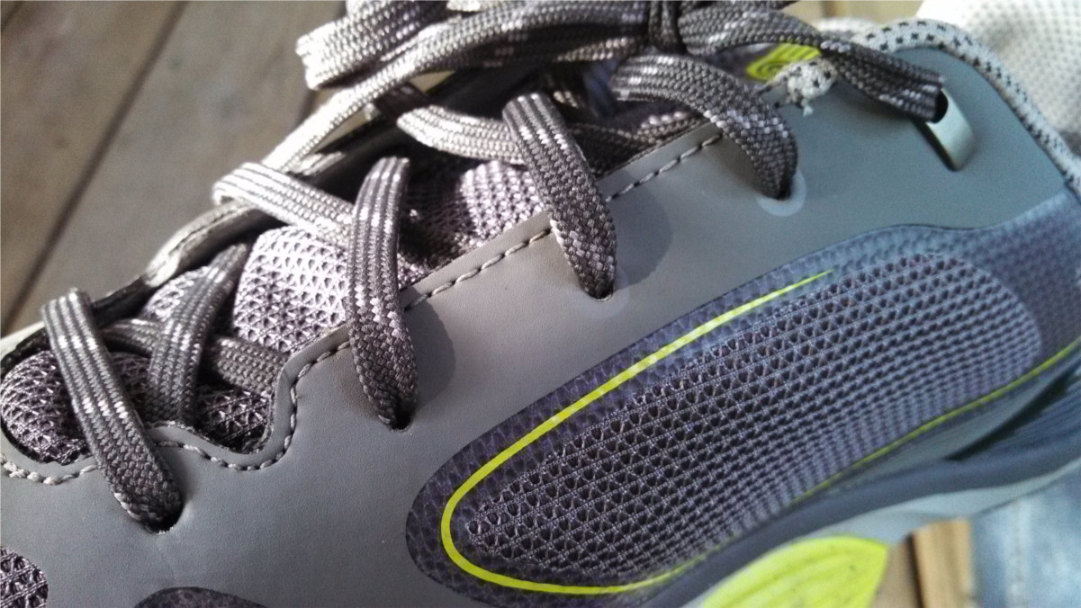 (10 out of 10) I found the Spider 365 rubber that covers the sole of these shoes to be exceptionally “grippy.” The tread is fairly aggressive and designed for trail running. Rarely was there a moment when slippage was on my mind. No matter the conditions (wet, dry or in between) these shoes kept me up-right without any fear of injury. For an up-close look of where the rubber meets the trail click on the images below…